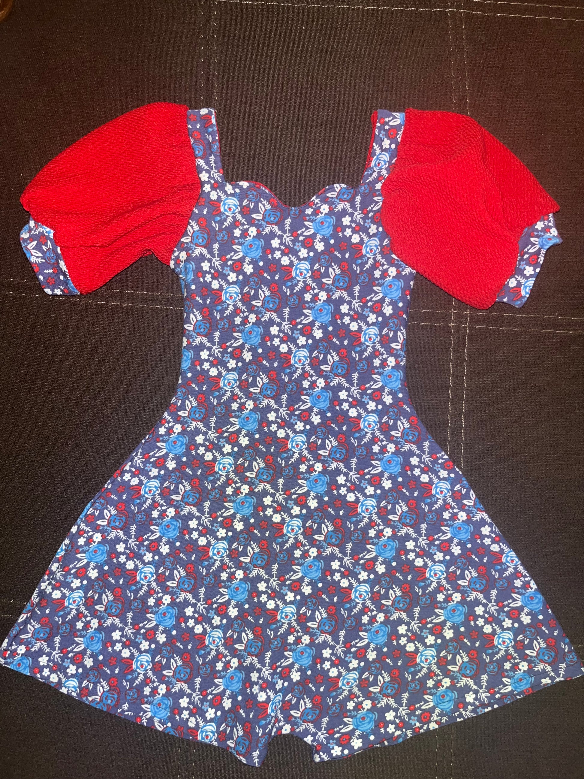 - Red, White & Blue Floral Cotton Interlock Knit (98% Cotton and 2% Spandex)